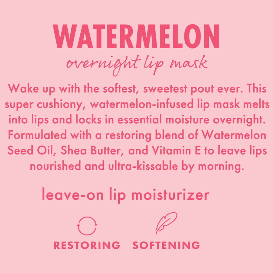 WHAT IT DOES – Wake up with the softest, sweetest pout ever. This super cushiony, watermelon-infused lip mask melts into lips and moisturizes overnight while you sleep.